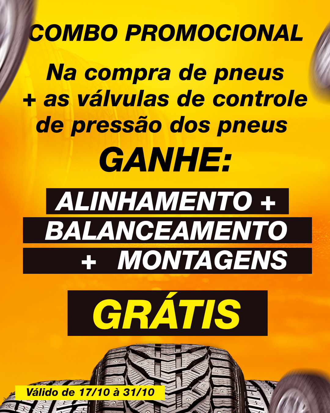 Seja para pegar a estrada ou rodar na cidade com tranquilidade, garantir pneus de qualidade faz toda a diferença. Conte com nossa equipe especializada, atendimento de qualidade e condições que fazem a diferença no seu bolso!